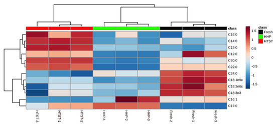 | Tetracosanoic acid | C24:0 | Taric acid | Saturation | 2.99 ± 0.03 c | 2.73 ± 0.03 b | 2.51 ± 0.07 a |
