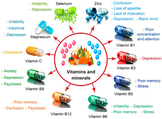 Food and nutrition are pivotal in shaping both physical and mental health. The absence of essential nutrients can significantly impact mental well-being, contributing to conditions like anxiety and depression. Conversely, improving one’s diet has shown promise in alleviating these mental health challenges and promoting overall well-being [57,58,59,60,61,62,63,64,65,66,67]. Recent studies underscore the importance of nutritional deficiencies in influencing physical and mental health.