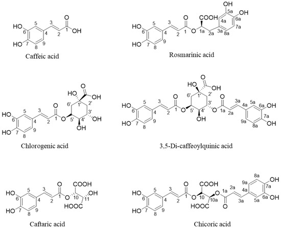 - Schütz, K.; Kammerer, D.R.; Carle, R.; Schieber, A. Characterization of Phenolic Acids and Flavonoids in Dandelion (Taraxacum officinale WEB. Ex WIGG.) Root and Herb by High-Performance Liquid Chromatography/Electrospray Ionization Mass Spectrometry. Rapid Commun. Mass Spectrom. 2005, 19, 179–186. [Google Scholar] [CrossRef]