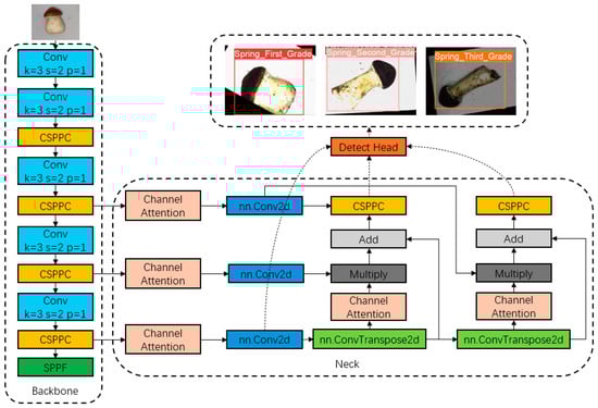 The CSPPC module, a lightweight innovative module based on the PConv proposal, replaces C2f and is integrated into the backbone network of the algorithm. This integration eliminates highly similar channel features, reduces computational redundancy and memory accesses, reduces the number of parameters and improves detection speed. The module connects two PConvs in series during the output process, reducing the amount of computational parameters of the model used for the experiment by more than half a million. Figure A1 illustrates the structure of the CSPPC module. CSPPC can significantly reduce the size of the model for easy piggybacking, which in turn reduces the cost of grading equipment development.