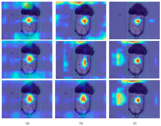 The heat map indicates that the models generated following knowledge distillation-assisted training tend to focus on feature inputs in the vicinity of Stropharia rugoso-annulata. This approach combines the strengths of both the teacher and student models, directing attention towards the Stropharia rugoso-annulata features while reducing the influence of irrelevant features from the student and teacher models.