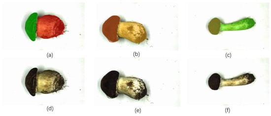 Classification of Stropharia rugoso-annulata: (a) Autumn first class. (b) Autumn second class. (c) Autumn third class. (d) Spring first class. (e) Spring second class. (f) Spring third class.