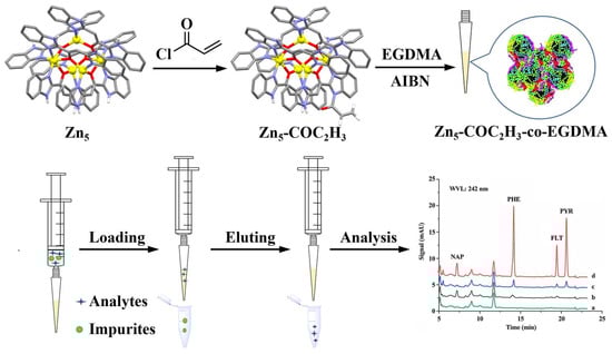 Schematic of the synthesis of Zn5 copolymer monolithic column and μ-SPE procedure. Adapted from [60], with permission from X. Wu, 2023.