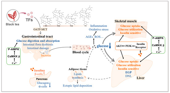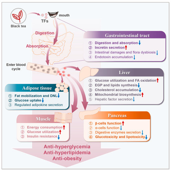 Chicago/Turabian StyleXu, Shiyu, Ying Chen, and Yushun Gong. 2024. "Improvement of Theaflavins on Glucose and Lipid Metabolism in Diabetes Mellitus" Foods 13, no. 11: 1763. https://doi.org/10.3390/foods13111763