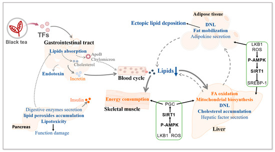 - Lin, C.L.; Huang, H.C.; Lin, J.K. Theaflavins attenuate hepatic lipid accumulation through activating AMPK in human HepG2 cells. J. Lipid Res. 2007, 48, 2334–2343. [Google Scholar] [CrossRef]