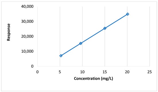 The standard deviation at the lowest point (5 mg/L) was 0.32. The detection limit and quantification limit are shown in Table 3.