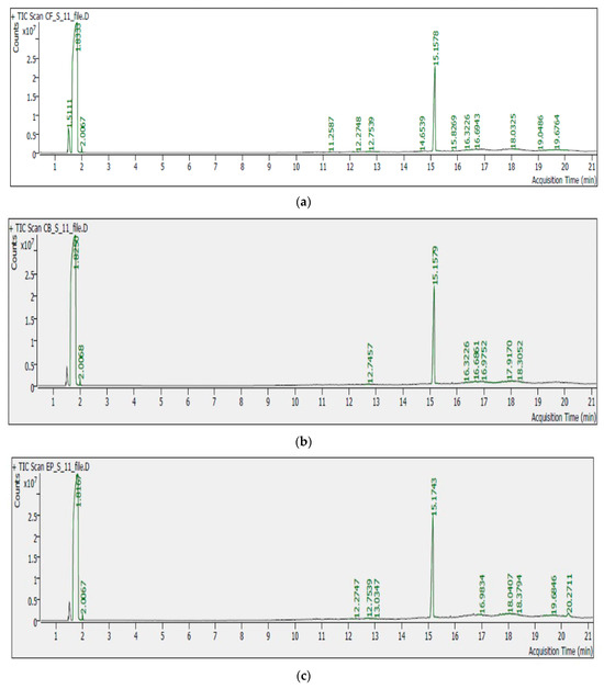 The experiment was performed in a gas chromatography (model no. 8890, Agilent Technologies, Mundelein, IL, USA) system coupled with a mass spectrometry (5977B) detector. The machine had a split/splitless injector with an electronic pressure control system. A fused silica DB 5 MS capillary column (30 m × 0.25 mm × 0.25 µm film thickness) was used. Helium was used as carrier gas. Table 1 shows the method in brief.