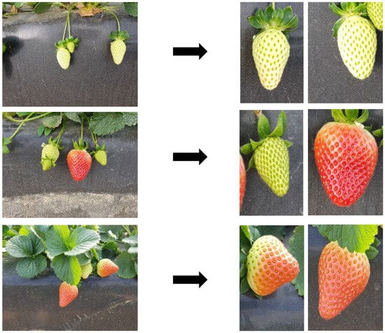 Strawberries dataset before and after cropping.