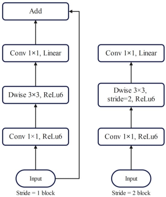 MobileNetV2 is a specialized type of CNN designed for a range of visual tasks, particularly useful in agriculture []. Its standout feature is efficiency, crucial in scenarios with limited computational resources []. Its ability to achieve high accuracy with a reasonable number of parameters makes it suitable for real-time applications such as crop monitoring and disease identification in agriculture.