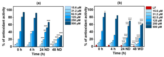 2.6. Assessment of Antioxidant Activity