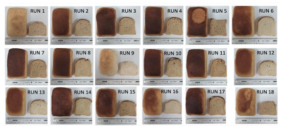 Appearance of the different bread formulations (specific formulation of each run reported in Table 1).