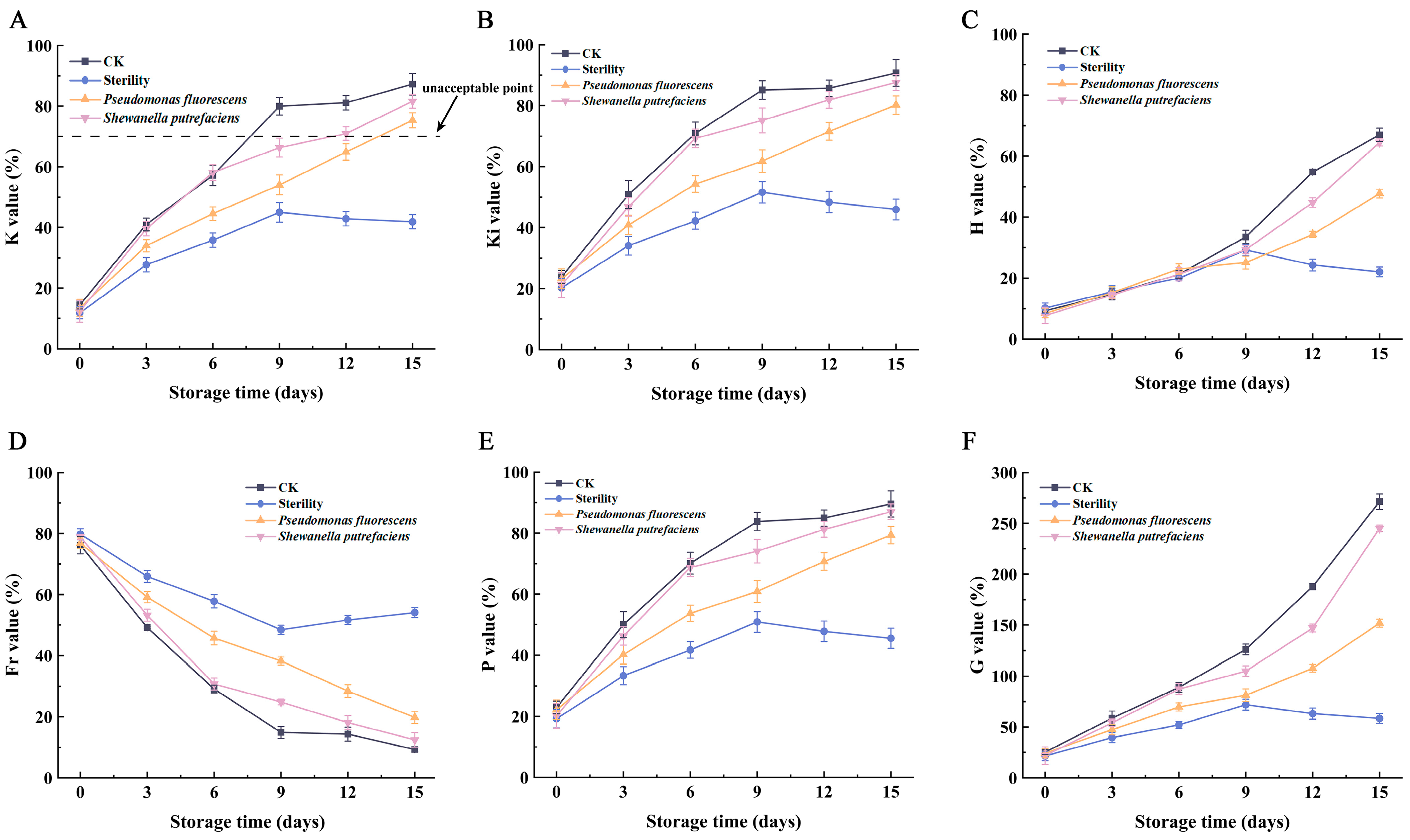 - Zhuang, S.; Tian, L.; Liu, Y.; Wang, L.; Hong, H.; Luo, Y. Amino acid degradation and related quality changes caused by common spoilage bacteria in chill-stored grass carp (Ctenopharyngodon idella). Food Chem. 2023, 399, 133989. [Google Scholar] [CrossRef] [PubMed]