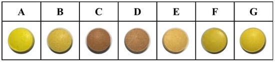 The appearance of combined curcumin controlled-release tablets (A–G: different tablet formulae).