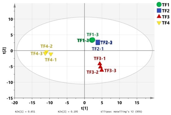 The results are expressed as the mean ± standard deviation. All data were analyzed using IBM SPSS Statistics 26.0 (SPSS Inc., Chicago, IL, USA) and a one-way analysis of variance (ANOVA), Duncan test (significance defined as p < 0.05), and correlation analysis were conducted. Origin 2018 (OriginLab Corporation, Northampton, MA, USA) was used for plots. Chemometrics was performed using SIMCA 14.1 (MKS Umetrics, Umea, Sweden).