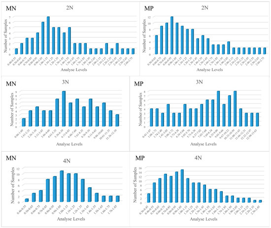 Distribution of Glycogen Content in Different Ploidy C. gigas Samples. Note: 2N, 3N, 4N indicate diploid, triploid, tetraploid; MN, MP indicate: MicroNIR 1700 Near-Infrared Spectrometer, Micro PHAZIR RX Near-Infrared Spectrometer.