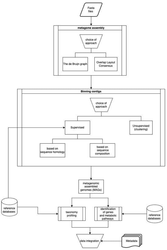 The objective of this review is to outline the individual processes involved in the analysis of food metagenomics, emphasizing its key aspects and presenting modern bioinformatic solutions.