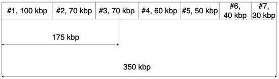 Contigs sorted by length in descending order with a total length of 350 kbp. The N50 parameter for this sequence is the length of the contig located at the midpoint of the sequence–70 kbp. The L50 parameter is the position of the contig located at the midpoint of the sequence–3.
