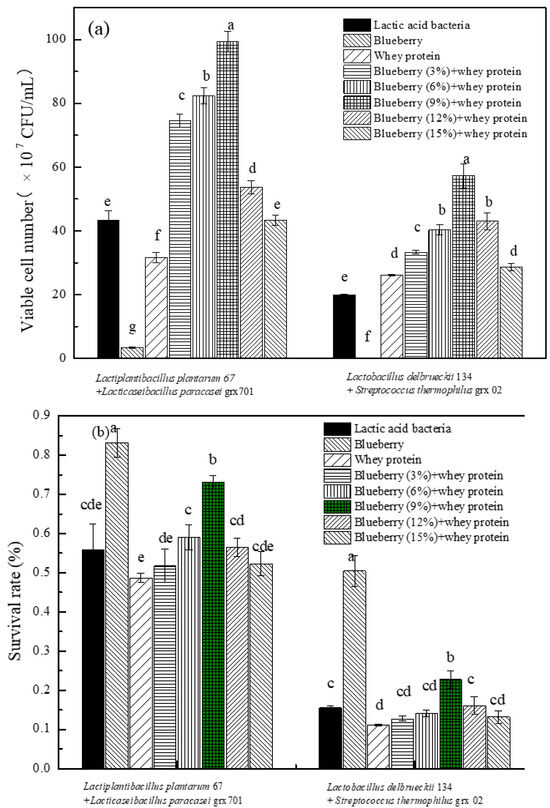Chicago/Turabian StyleWang, Yuxian, Xian Liu, Yufeng Shao, Yaozu Guo, Ruixia Gu, and Wenqiong Wang. 2024. "Cheese Whey Protein and Blueberry Juice Mixed Fermentation Enhance the Freeze-Resistance of Lactic Acid Bacteria in the Freeze-Drying Process" Foods 13, no. 14: 2260. https://doi.org/10.3390/foods13142260