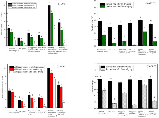 - Yang, Y.; Wang, R.; Yang, Y.; E, J.; Wang, J. Effects of different pre-freezing temperatures on the freeze-drying survival rate and stability during room temperature storage of Lactiplantibacillus plantarum LIP-1. Food Biosci. 2022, 50, 102087. [Google Scholar] [CrossRef]