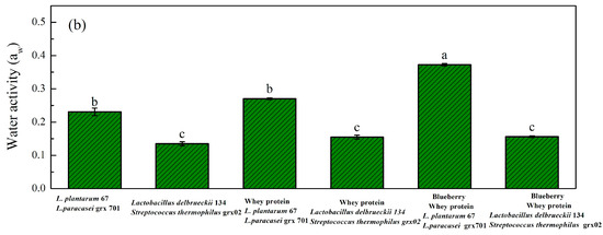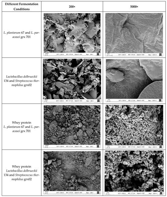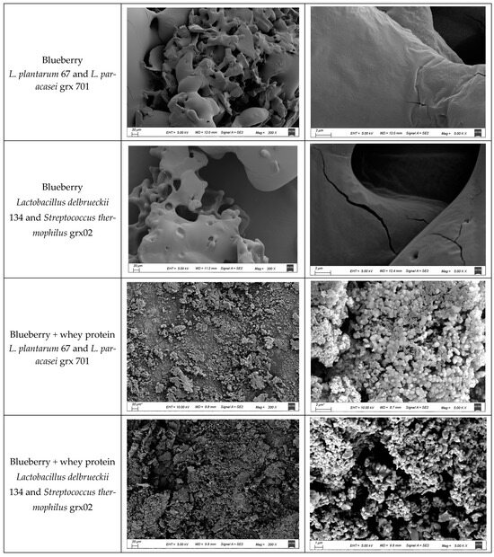 - Wang, W.; Zhang, J.; Yu, Q.; Zhou, J.; Lu, M.; Gu, R.; Huang, Y. Structural and Compositional Changes of Whey Protein and Blueberry Juice Fermented Using Lactobacillus plantarum or Lactobacillus casei during Fermentation. RSC Adv. 2021, 11, 26291–26302. [Google Scholar] [CrossRef]