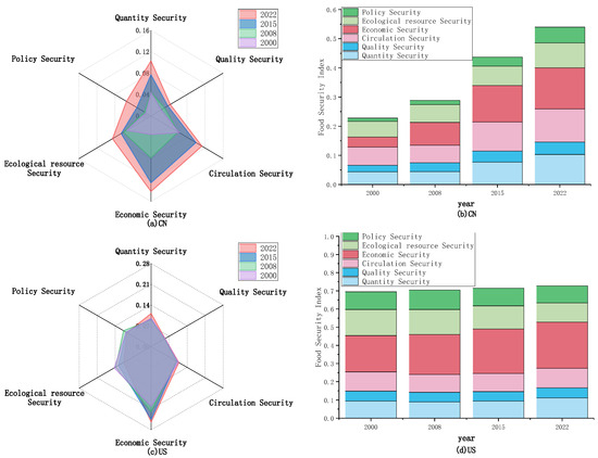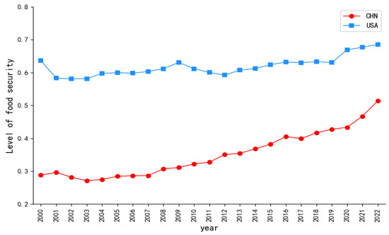Changes in food security levels in China–US from 2000 to 2022.