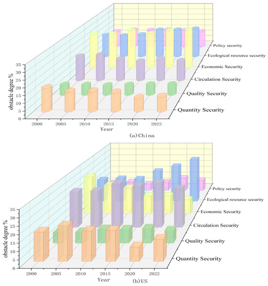 The obstacle degree model is employed to identify the key variables that constrain the food security of China and the United States, thereby seeking a path for the sustainable development of food security in both countries [34].