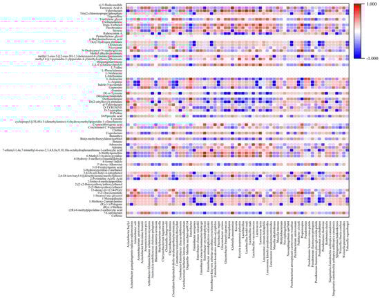 Heatmap of metabolite profiles of bacteria at different fermentation stages analyzed by Spearman’s correlation.