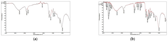 FTIR spectra of the seeds after biosorption of anthocyanins: (a) L1S1-raw seed and (b) L1S2-defatted seed.