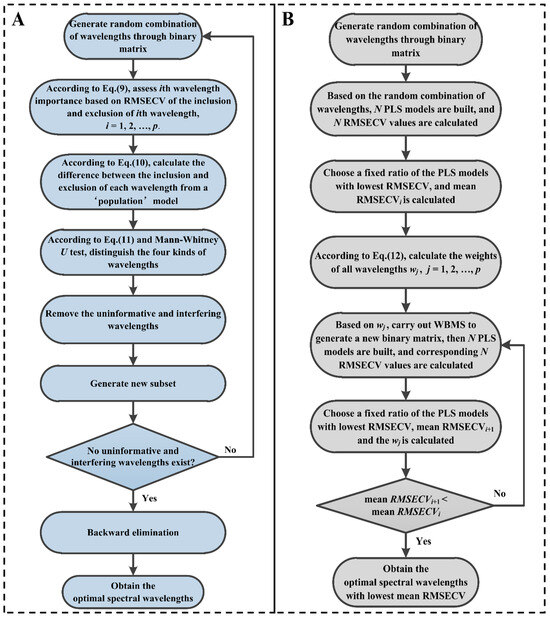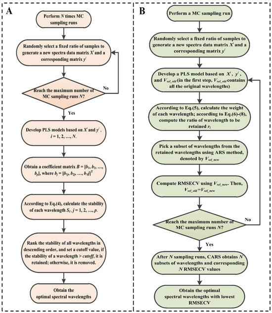 Referring to previous literature [41], the number of binary matrix sampling runs N was set to 500. A flowchart of IRIV is shown in Figure 3A.
