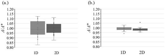 The repeatability was analyzed by repeated injection of the same sample (N = 12). A boxplot representation for CYA (a) using 1D–LC and MEL (b) using 2D–LC shows the difference between the two methods. The black line in the middle of the boxplot depicts the mean of the two ion ratios. Since A/A* is proportional to RB and RBc, the repeatability is a crucial factor in the combined measurement uncertainty.