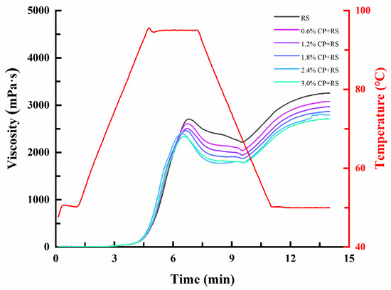 RVA pasting profiles of RS and CP–RS gels of diverse CP concentrations.