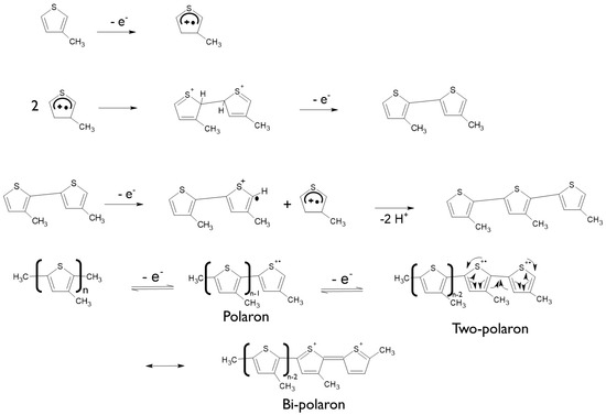 Much of the focus has been on poly(3-methyl thiophene) (P3MT), a polythiophene derivative, due to its high conductivity, flexibility, high tensile strength, and versatility. P3MT has been investigated and applied in microelectronics, optoelectronics, and sensors, as it can be prepared by either chemical or electrochemical oxidation of the monomer with or without a template with varied nanostructures [79].