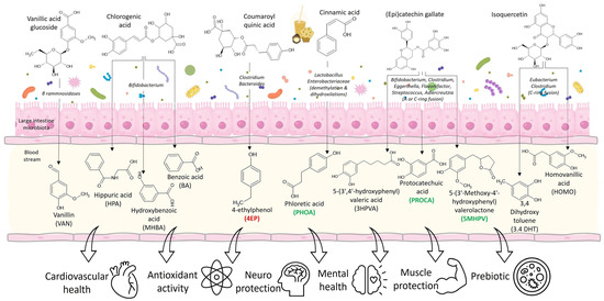 - Cortés-Martín, A.; Selma, M.V.; Tomás-Barberán, F.A.; González-Sarrías, A.; Espín, J.C. Where to Look into the Puzzle of Polyphenols and Health? The Postbiotics and Gut Microbiota Associated with Human Metabotypes. Mol. Nutr. Food Res. 2020, 64, 1900952. [Google Scholar] [CrossRef] [PubMed]