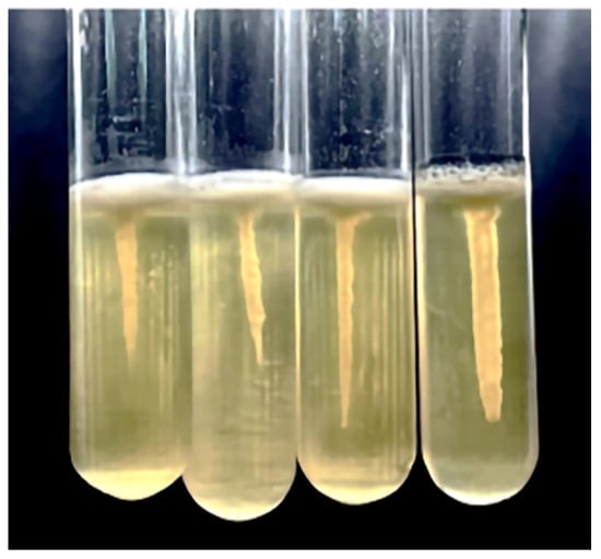 The L. monocytogenes ATCC 19115 suspension (106 CFU/mL) was dipped and pierced vertically in BHI semi-solid medium (0.4% agar) with different Z102-E concentrations (3.2, 1.6, 0.8, and 0 mg/mL) and cultured at 25 °C for 48 h. The motility of L. monocytogenes was observed [60].