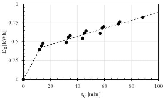 where eS,eff indicates the specific electrical energy actually absorbed from the Italian grid to cook 1 kg of dry beans, ηIG (=6.1%) represents the average electrical energy grid lost in 2021 [39], WPR (=4 L/kg) is the ratio between the volume of cooking water and the quantity of dried beans to be cooked (mBD), cSi is the concentration of the i-th salt dissolved in the cooking water; while EFEE, EFTW, and EFSi are the emission factors (referring to a 100-year time horizon) associated with the production and distribution of low-voltage electrical energy in Italy, the use of tap water, and the production of the i-th salt used, respectively. Table 1 reports these emission factors, which were retrieved from the Ecoinvent database v. 3.9.1 of the LCA Simapro 9.5.0.0 software (Prè Consultants, Amersfoort, The Netherlands). In particular, by referring to the dry carbonation of potassium carbonate with a gaseous stream composed of carbon dioxide gas and steam in unitary molar ratio at 100 °C in a fluidized bed reactor, as patented by Kurtz and Winston [40], it was possible to estimate the emission factor for potassium bicarbonate using the aforementioned Simapro software, as reported in Table 1.