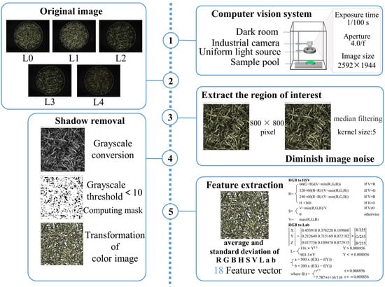 Flow chart of the image acquisition and feature extraction of tea samples.
