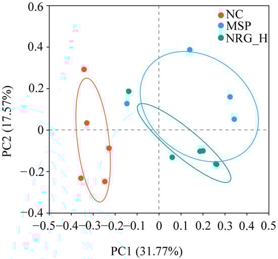 Utilizing 16S rDNA sequencing, alterations in the gut microbiota composition across the various treatment groups post-drug administration were ascertained. Principal coordinates analysis (PCoA) demonstrated that the gut microbiota composition of the NC group markedly differed from those of the MSP and NRG_H groups. Conversely, the microbiota profiles within the MSP and NRG_H groups exhibited greater degrees of similarity (Figure 5).