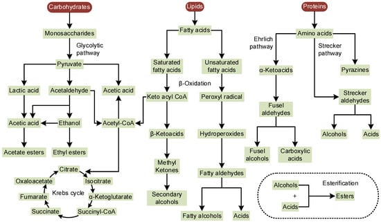 Possible metabolic pathways for the formation of volatiles [,,].