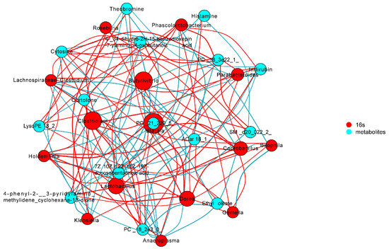 Network diagram of associations of gut based on lefse-genus and metabolites based on OPLS-DA.
