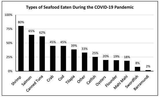 Percentage of seafood consumers eating various selections during the pandemic (weighted data; n = 1077).
