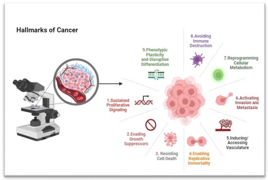 - Ravi, S.; Alencar, A.M., Jr.; Arakelyan, J.; Xu, W.; Stauber, R.; Wang, C.; Papyan, R.; Ghazaryan, N.; Pereira, R. An Update to Hallmarks of Cancer. Cureus 2022, 14, e24803. [Google Scholar] [CrossRef]