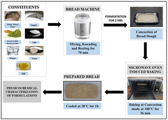 - Ibrahim, U.; Rahman, N.A.A.; Suzihaque, M.U.H.; Hashib, S.A.; Aziz, R.A.A. Effect of baking conditions on the physical properties of bread incorporated with green coffee beans (GCB). IOP Conf. Ser. Mater. Sci. Eng. 2020, 736, 062019. [Google Scholar] [CrossRef]