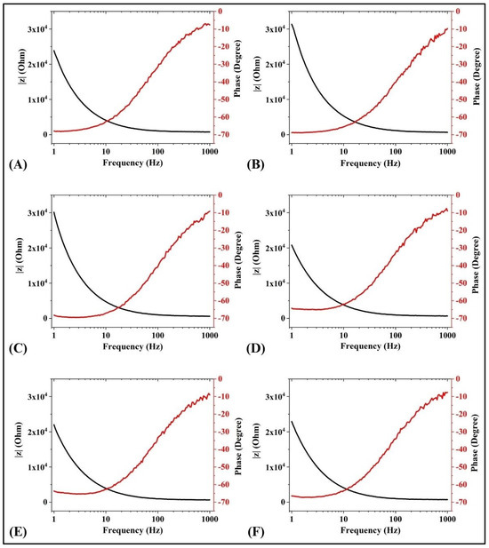 | Q (F) | 6.54 × 10−5 ± 1.49 × 10−6 de | 1.16 × 10−5 ± 3.03 × 10−6 a | 2.10 × 10−5 ± 1.00 × 10−6 b | 3.20 × 10−5 ± 6.55 × 10−6 c | 2.46 × 10−5 ± 4.08 × 10−6 bc | 2.05 × 10−5 ± 6.84 × 10−7 ab |