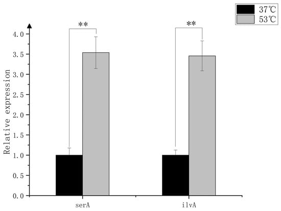 3.1. Expression of ilvA and serA in BJ3-2 Incubated at 37 °C and 53 °C