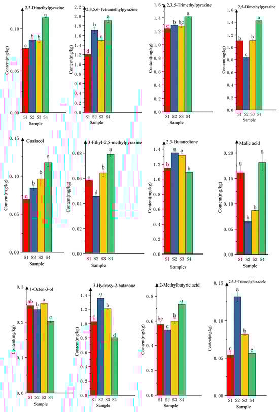 3.8. Correlation between Key Aroma Compounds and Sensory Attributes