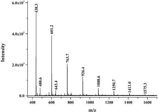 Samples were dissolved in distilled water (5 mg/mL) and assessed by matrix-assisted laser desorption/ionization time of flight mass spectrometry (MADLI-TOF-MS). 10 mg of 2,5-dihydroxybenzoic acid was dissolved in a mixture of 500 μL of acetonitrile and 0.1% trifluoroacetic acid (v:v = 1:1) to prepare a matrix solution (20 mg/mL). After mixing 1 μL of the sample solution and 1 μL of matrix solution, 1 μL of the mixed solution was placed on a stainless steel target plate and evaporated for 15 min. A BRUKER-Autoflex mass spectrometer in the positive ion mode was used; the scanning range was 100~2000 m/z. Data were collected using FlexContral 3.4 software and analyzed by FlexAnalysis 3.3.80 software.