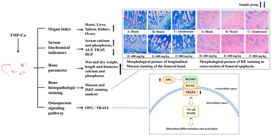 Mechanism of TMP-Ca chelates to ameliorate retinoic acid-induced osteoporosis of rats. The black arrow in the figure indicates the rising or falling trend of the sample group.