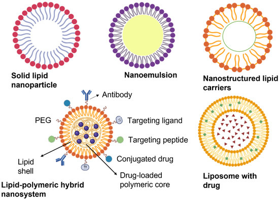 - Nsairat, H.; Khater, D.; Odeh, F.; Al-Adaileh, F.; Al-Taher, S.; Jaber, A.M.; Alshaer, W.; Al Bawa, A.; Mubarak, M.S. Lipid Nanostructures for Targeting Brain Cancer. Heliyon 2021, 7, e07994. [Google Scholar] [CrossRef] [PubMed]