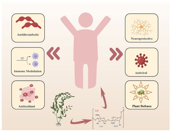 Alzheimer’s disease (AD) is a complex neurodegenerative disorder whose pathogenesis involves multiple mechanisms. One of the proposed mechanisms is the abnormal folding and aggregation of amyloid β-protein (Aβ), which is considered to be one of the major factors in the onset and progression of AD. Recent studies have demonstrated that ulvan can inhibit Aβ aggregation in a concentration-dependent manner [41]. This finding provides a new research direction for the use of ulvan as potential functional foods for the treatment of AD.