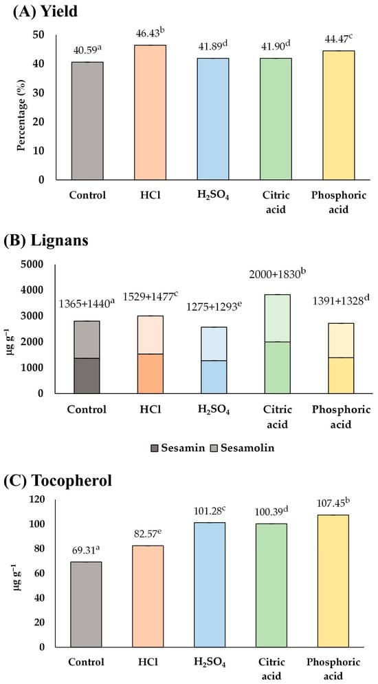 | Citric Acid Treatment | Source | Lignans | Tocopherol | ||||||||